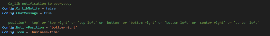 Integrated Chat message Config option to turn/disable. You can now enable wether you want the lib.notification on the right or a chat message top-left.